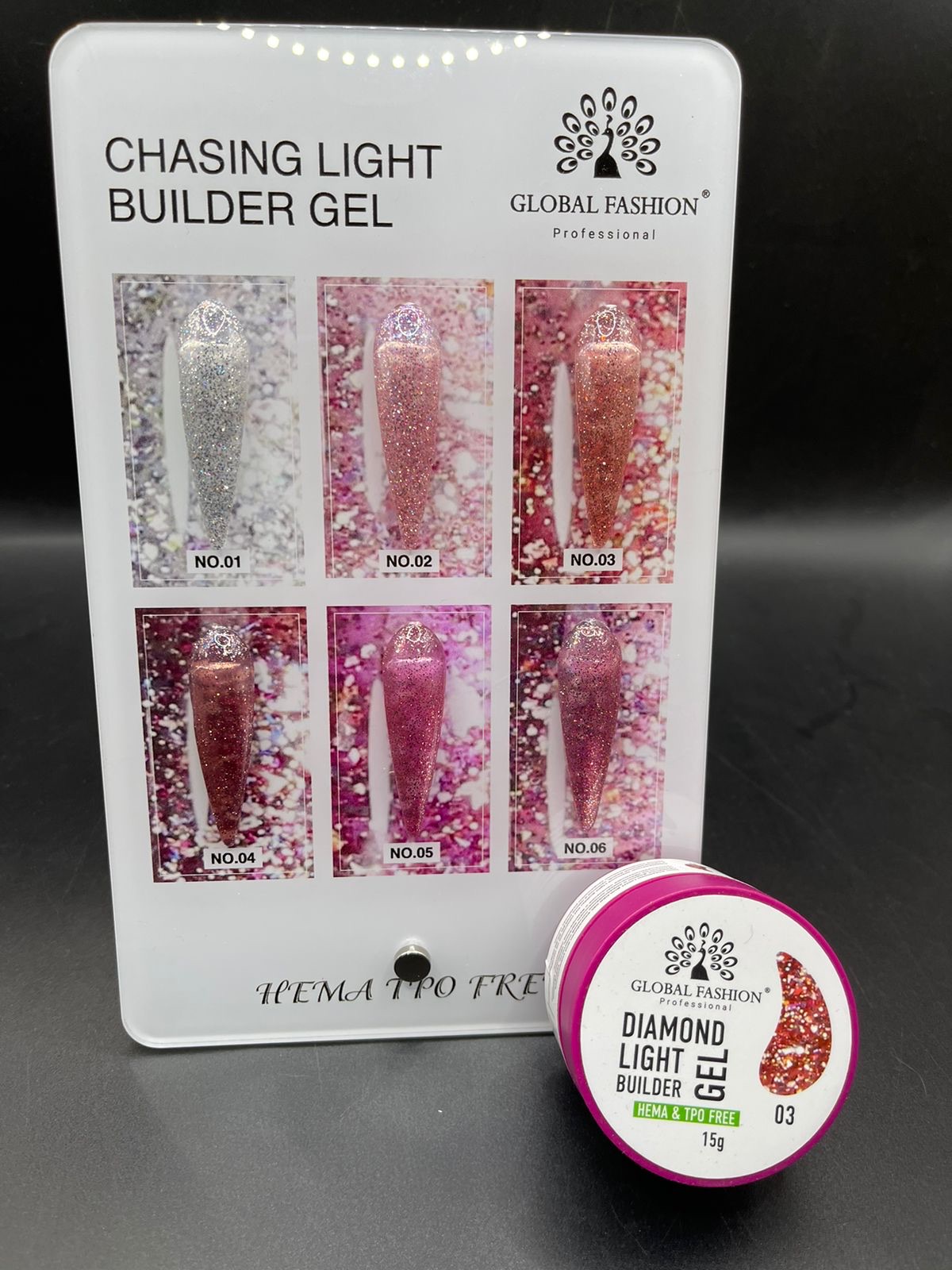 Эффект: Светоотражение ("Chasing Light"). При обычном дневном свете выглядит как плотный гель с блестками, а при направленном свете создается эффект «бриллиантового» сияния.