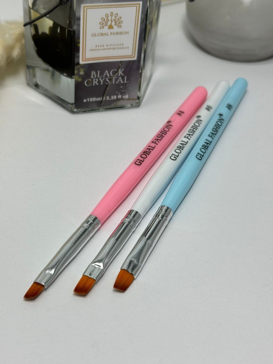 Кисти для геля скошенная Global Fashion, #4, #6, #8, 3 шт