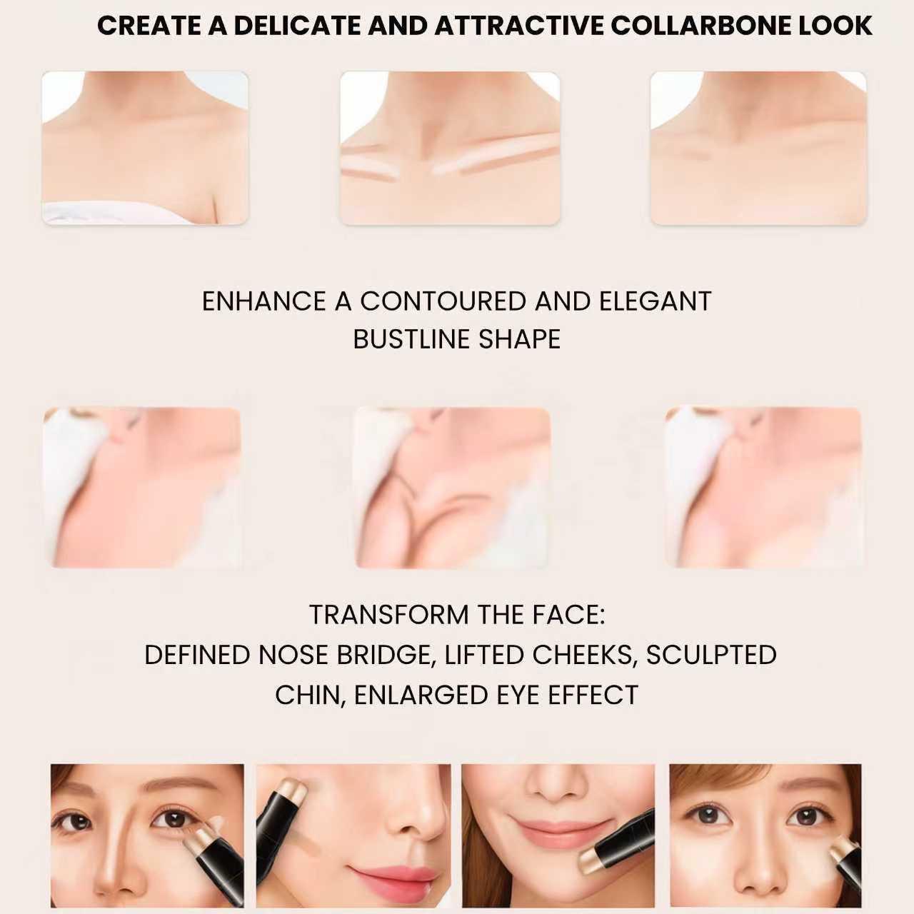 Применение: Используется для контуринга скул, линии подбородка, лба и носа, а также для выделения ключевых точек лица.