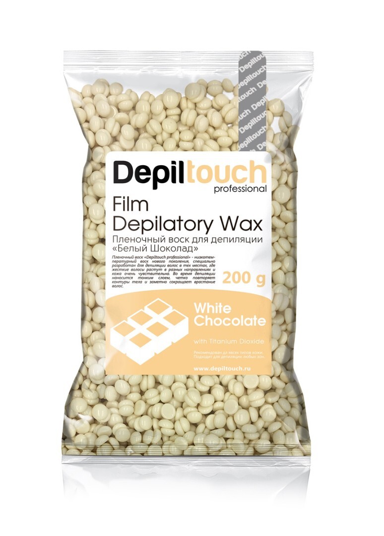 Гранулированный пленочный (бразильский) воск с диоксидом титана и ароматом шоколада эффективно и мягко удаляет волосы. Диоксид титана в составе воска дарит ему дополнительную пластичность, снижает температуру плавления и увеличивает время застывания.