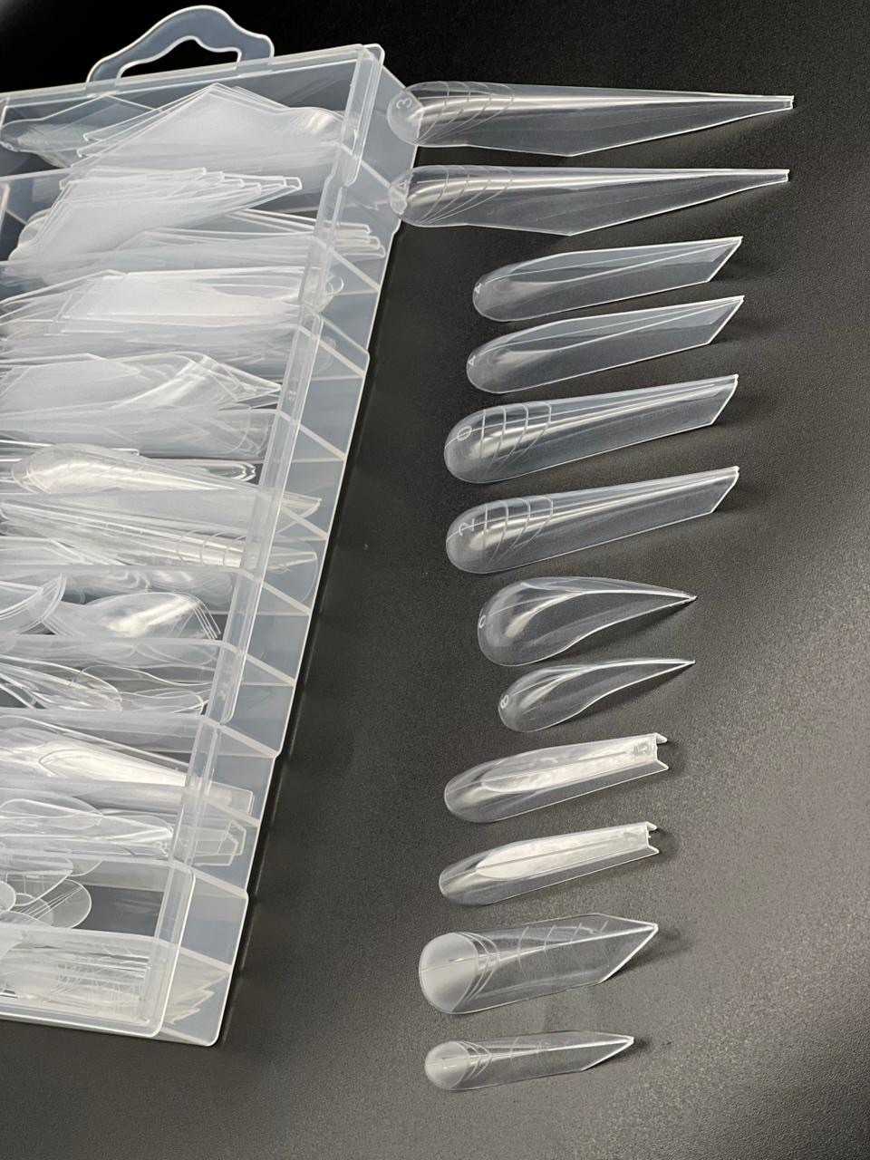 На форму нанесена разметка для формирования ровных и одинаковых ногтевых пластин. Типсы для наращивания ногтей подходят для большинства натуральных ногтей.